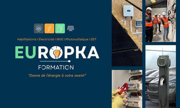 Europka Formation, organisme certifié Qualiopi basé à Seclin, propose des formations professionnelles dans les domaines de l’électricité, des bornes de recharge IRVE, du photovoltaïque et des habilitations électriques. Nos programmes, animés par des formateurs experts, allient théorie et pratique sur un plateau technique complet, afin de garantir la montée en compétence et la réussite professionnelle de chaque stagiaire.Coordonnées
